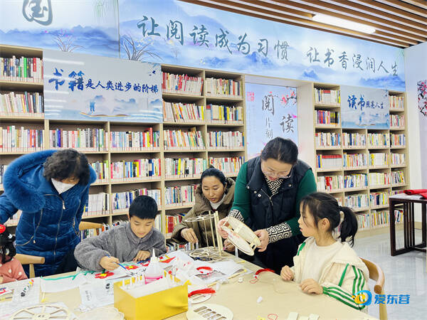 河新社区城市书房内,孩子们围坐在桌前专注制作非遗手作。