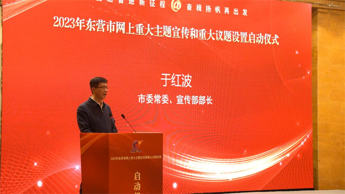 3月22日,2023年东营市网上重大主题宣传和重大议题设置启动仪式举行,充分发挥网络优势,讲好东营故事、提振发展信心,为高水平现代化强市建设营造良好网上舆论环境。省委网信办总工程师赫丛庆出席并致辞,市委常委、宣传部部长于红波出席并讲话。