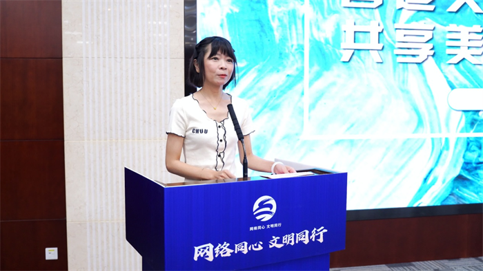 全网粉丝超过600万的山东省正能量网络大V李朵儿以《营造文明网络生态 共享美好数字生活》为题为作演讲。