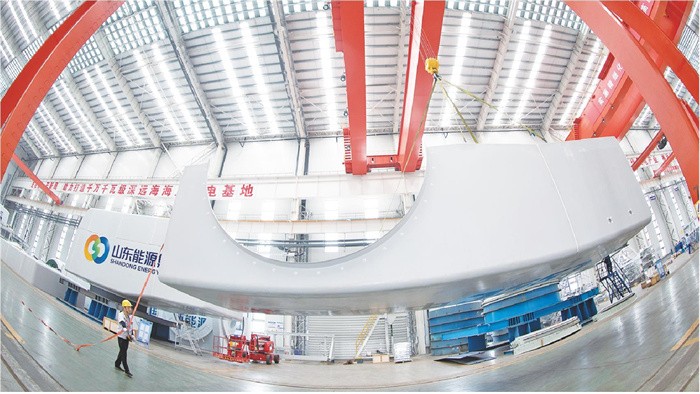 地下的石油是资源,天上富集的风光也是资源。在东营市垦利区老十五村盐碱滩涂地上,山东省单体容量最大的光伏发电项目——华润财金红光渔业800MW光伏发电项目于去年7月实现并网发电;距离东营港20公里的渤海中部近海海域,一台台百米高的风电机组迎风旋转,全国平价海上风电第一度“绿电”于2022年在这里发出。