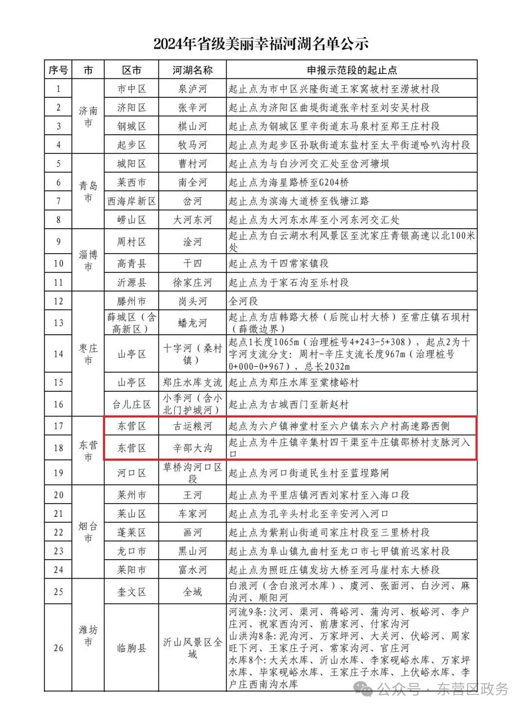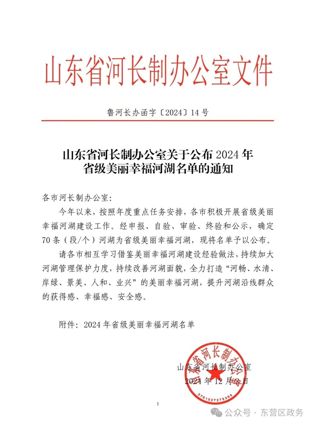 自2020年起,山东省开展美丽幸福河湖建设,以“防洪保安全、优质水资源、健康水生态、宜居水环境、先进水文化”为建设目标,截至2024年年底,东营区累计创建省级美丽幸福河湖7条,市级美丽幸福河湖11条,区级及以上美丽幸福河湖在全市率先实现全覆盖。