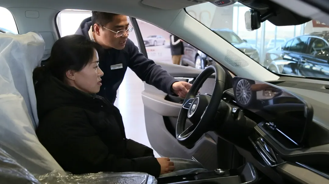 临近年关,广饶不少汽车专营店早早摆出新年促销活动的宣传海报,加上以旧换新补贴政策的双重让利,吸引了不少顾客前来看车,营销人员详细地介绍了车型、配置、油耗等信息,并细致地为顾客算好“经济账”。