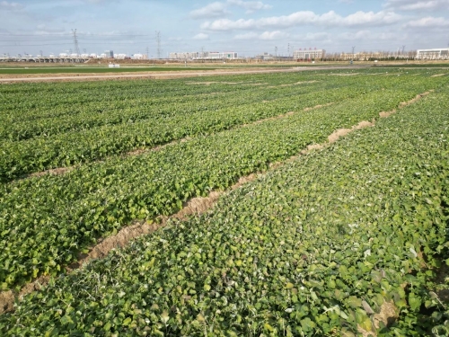 开展盐碱地综合利用,不仅要“以种适地”,还要持续推进“以地适种”。针对中度盐碱地,垦利区引进盛旺农业科技公司,运用“上膜下秸”技术,发展“循环农业”。针对重度盐碱地,引进乾舜科技水土治理有限公司,运用“封域双层真空负压阻控综合技术”即暗管排盐技术,进行盐碱地改良,目前五庄村附近有1万亩盐碱地达到“旱能浇、涝能排、田成方、路成网”的高标准农田标准。“现在主要种植了冬小麦,生长情况不错。”山东乾舜水土治理科技有限公司董事长盖俊山介绍,“去年小麦亩产能达到400公斤,玉米亩产600公斤。”