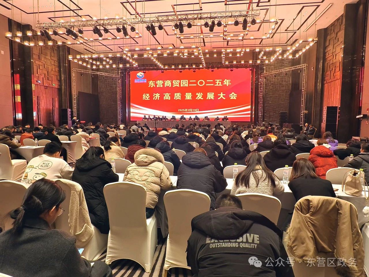 2月19日,东营商贸园召开2025年经济高质量发展大会,东营商贸园全体干部职工、驻园单位、园区企业和企业代表200余人参加。会议通报表扬了2024年度园区突出贡献企业、文明诚信经营企业(商户)、机关先进工作者、优秀社区工作者和优秀网格员,并推出第二批商贸园推荐品牌。大会明确全年各项目标任务,围绕六个“聚焦”全面谋划工作,以“大干快干实干”的冲劲,打响2025年奋进奔跑“发令枪”。