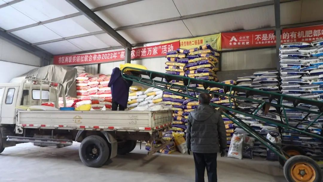 在河口区农资销售网点记者看到,各类种子、肥料、农药等农资产品摆放整齐,货量充足,工作人员正忙着为农户运送肥料。