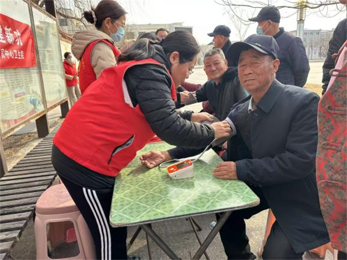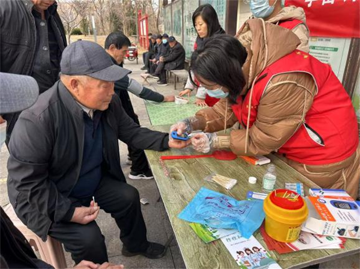 医务人员为群众测量血压、血糖并详细的记录数据,针对血压、血糖偏高的群众,刘冬梅院长耐心的讲解,询问用药数量,提供降血压、血糖的方案,并建议群众有必要时到医院就诊。