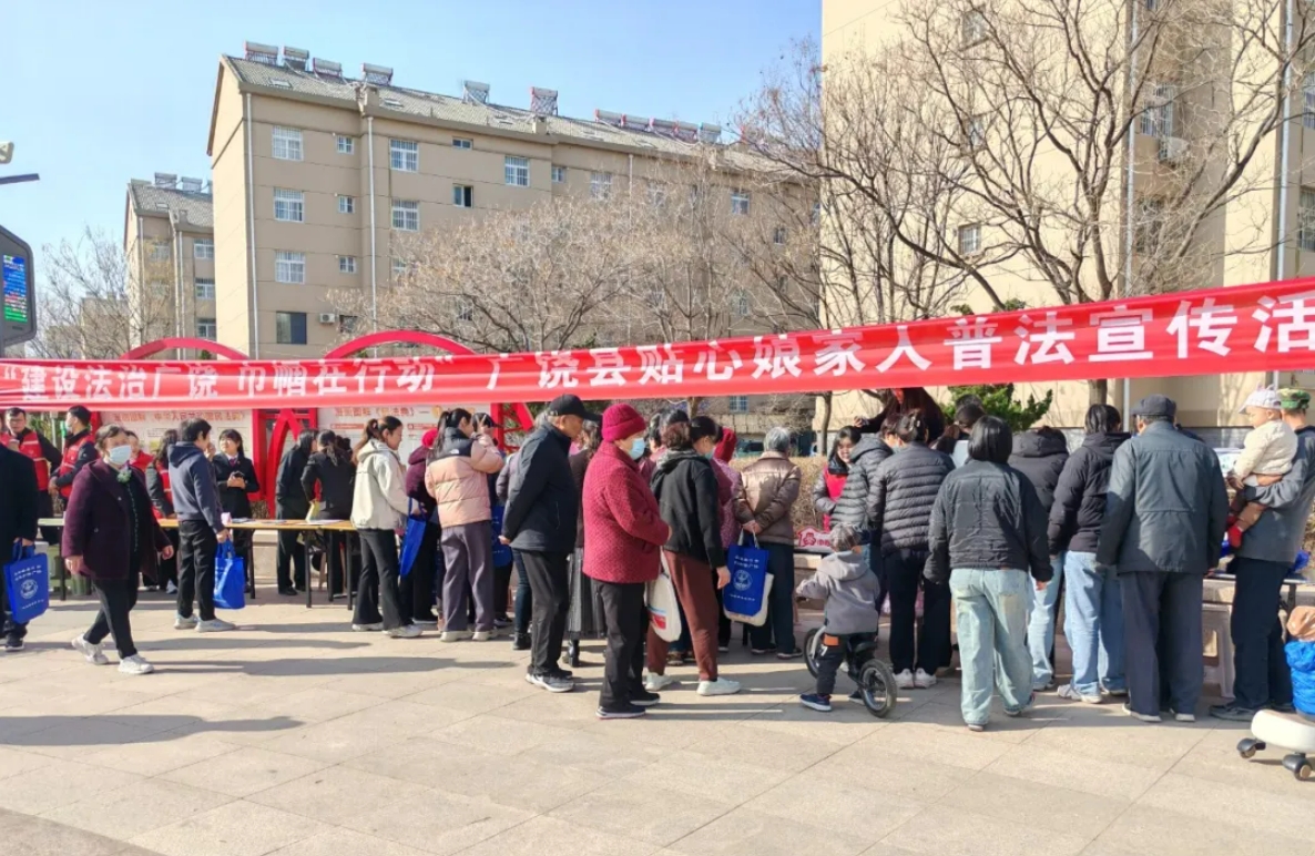 为进一步引导女性群众尊法、学法、守法、用法,营造尊重和保障妇女权益的良好社会氛围,3月13日,利用公益市集时机,广饶县司法局、县妇联、县委政法委、县法院、县检察院、县公安局、县行政审批局联合在广饶县康居社区开展了“建设法治广饶 巾帼在行动”贴心娘家人普法宣传活动。