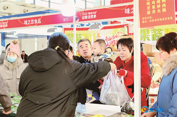 市民在东营首届年货节上精心挑选,置办年货。