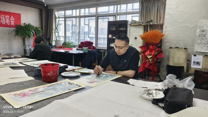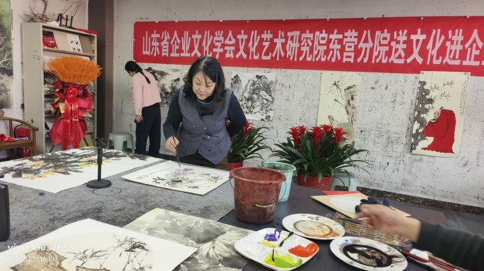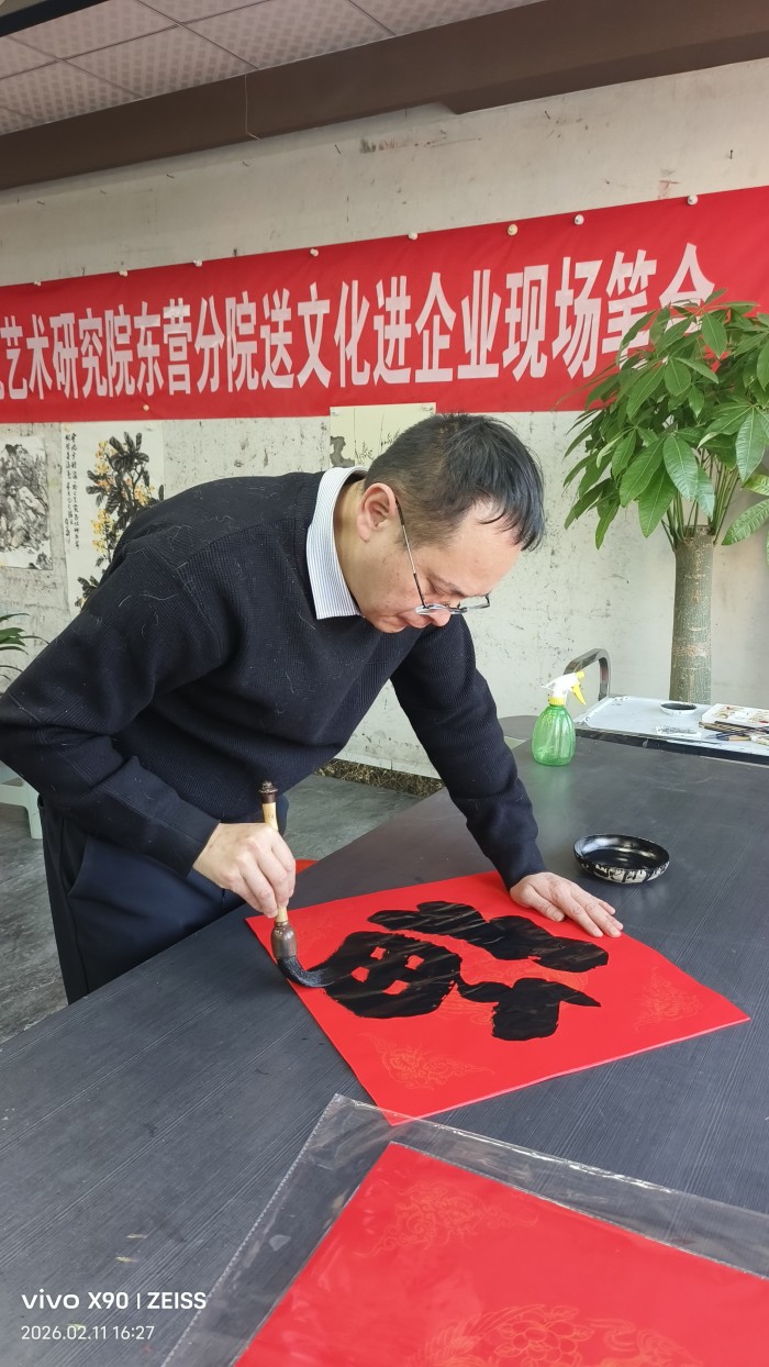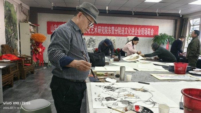 2026年2月11日,山东省企业文化学会文化艺术研究院东营分院现场笔会活动成功举办。分院院长王锡强带领顾问团队、多位副院长、副秘书长及院士等书画艺术家,走进企业挥毫泼墨,以笔墨传情、以文化赋能,为企业发展注入浓厚人文气息与精神动力。