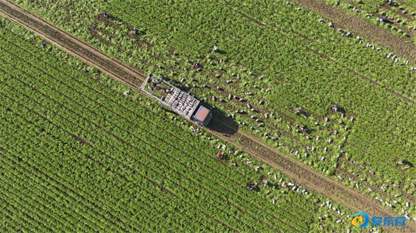 近日,在广饶县乐安街道榆林村的一处农田里,农民正在收割芹菜。霜降节气,气温降低,广饶县的农民抢抓农时,加紧收获露地蔬菜,供应市场,
