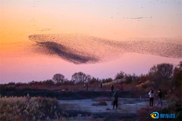 12月8日傍晚,黄河三角洲国家级自然保护区湿地上空,现万鸟化“鲲鹏”的“鸟浪”奇观。10余万只鸟儿时而扶摇直上,时而俯冲直下,时而急转盘旋,它们身姿轻盈灵敏,像鹏鸟、如巨鲸、似游鱼、比云朵、赛绸缎,美妙的空中芭蕾舞姿阵型在芦苇荡上空瞬息万变,巨型鸟阵让在场市民游客大饱眼福。进入12月份,迁徙而至的候鸟数量达到峰值,随着队伍的壮大,黄河口“鸟浪”也迎来了最佳观赏期。
