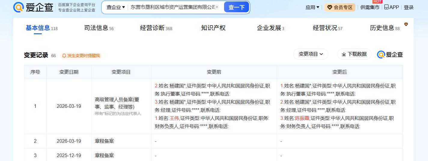 速豹财经|东营垦利城运集团高级管理人员发生变更