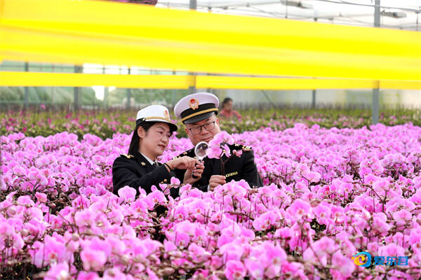 近日,位于东营区牛庄镇的山东双福花卉有限公司智能温室大棚内,东营海关工作人员正在对出口蝴蝶兰实施现场检疫。该公司的3万株蝴蝶兰成功